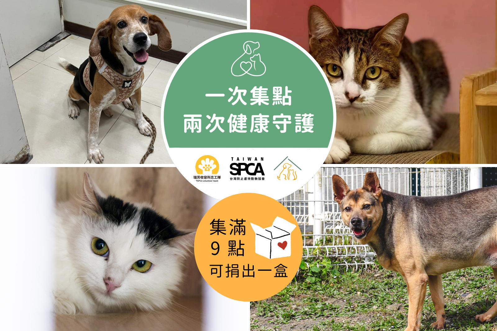 3/31 前,購買木入森的保健品,透過集點機制,用「點數」兌換,親自選擇想捐贈的公益單位與指定品項🎁(請選擇台灣防止虐待動物協會或瑞芳收容所志工隊!),9點或18點皆有相對應的保健品可選擇。