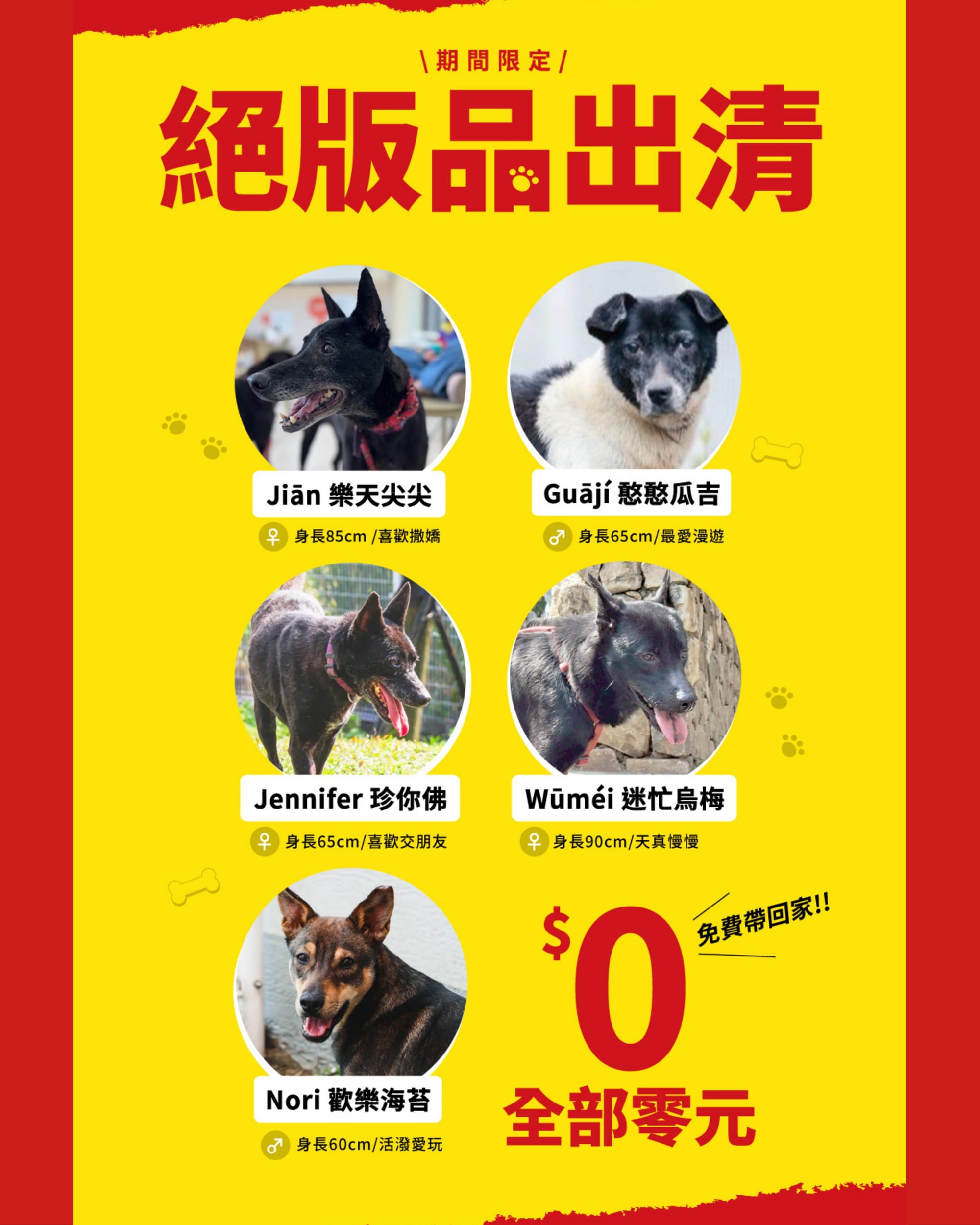 本次活動特別從瑞芳動物之家挑選5隻情緒穩定、適合家庭生活的犬隻參與,包括沉穩冷靜的8歲女生「#Jennifer」,親人也親狗;文靜愛撒嬌的「#烏梅」,不吵不鬧,喜歡靜靜陪伴在身邊,且與小朋友相處融洽;愛撒嬌的「#尖尖」,是個可愛的愛吃鬼,但不會護食,正在尋找願意給牠無限摸摸的家人;外表霸氣其實十分穩定親人的黑白米克斯「#呱吉」,無論居家或外出都能成為好夥伴;以及正值精力旺盛、健康活潑的「#海苔」,是一位親人又親狗的可愛毛寶貝。